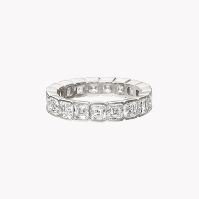 • Our MG exclusive Alexa Eternity Band gets an embellished spin showcasing 0.30 carat asscher cut diamonds set in 18K yellow or rose gold. Vintage glam meets timeless elegance with this stunning showcase of glimmering, bezel set diamonds. Crafted by hand, this deco-inspired piece makes a refined addition to any stack, or a gorgeous statement as a wedding band.
