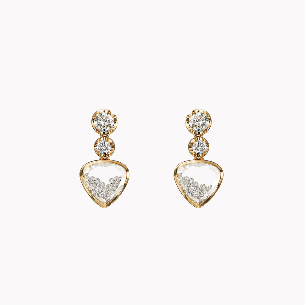 • Suspended from two stunning diamonds set in 18K white, yellow, or rose gold, these earrings feature free-floating diamonds within white sapphire windowpanes. This delicate silhouette demands a second look, as each light-catching stone gently shifts with your every move. Add a dash of intrigue to your everyday repertoire with these versatile stunners.