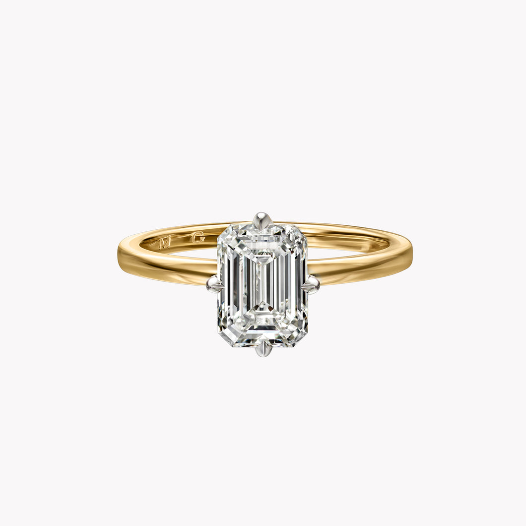 Product DetailsTwo-tone platinum and 18K yellow gold solitaire2.00 emerald cut diamondJ color, SI2 clarity1.7mm bandGIA certifiedPACKAGING