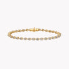 Tennis bracelet with pear shape diamonds set by hand in 18K white or yellow gold. This horizontal east-west setting adds a modern twist to the traditional tennis bracelet silhouette. Strike an unexpected note with this contemporary silhouette, perfect for layering with your favorite pieces.