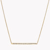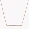 Horizontal pendant with 12 baguette cut diamonds seamlessly channel set in 18K yellow or rose gold. Suspended by a delicate chain, this ultra-long pendant seems to float effortlessly. Beautifully crafted to complement any neckline, The Eva Necklace’s modern elegance allows for easy layering with other necklaces.